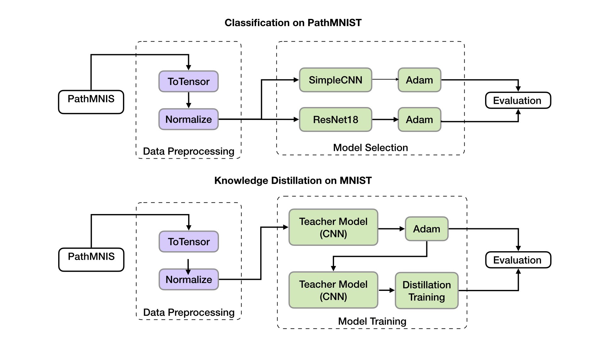 Automatic pathology slide classification with CNNs and LLM-based knowledge distillation.