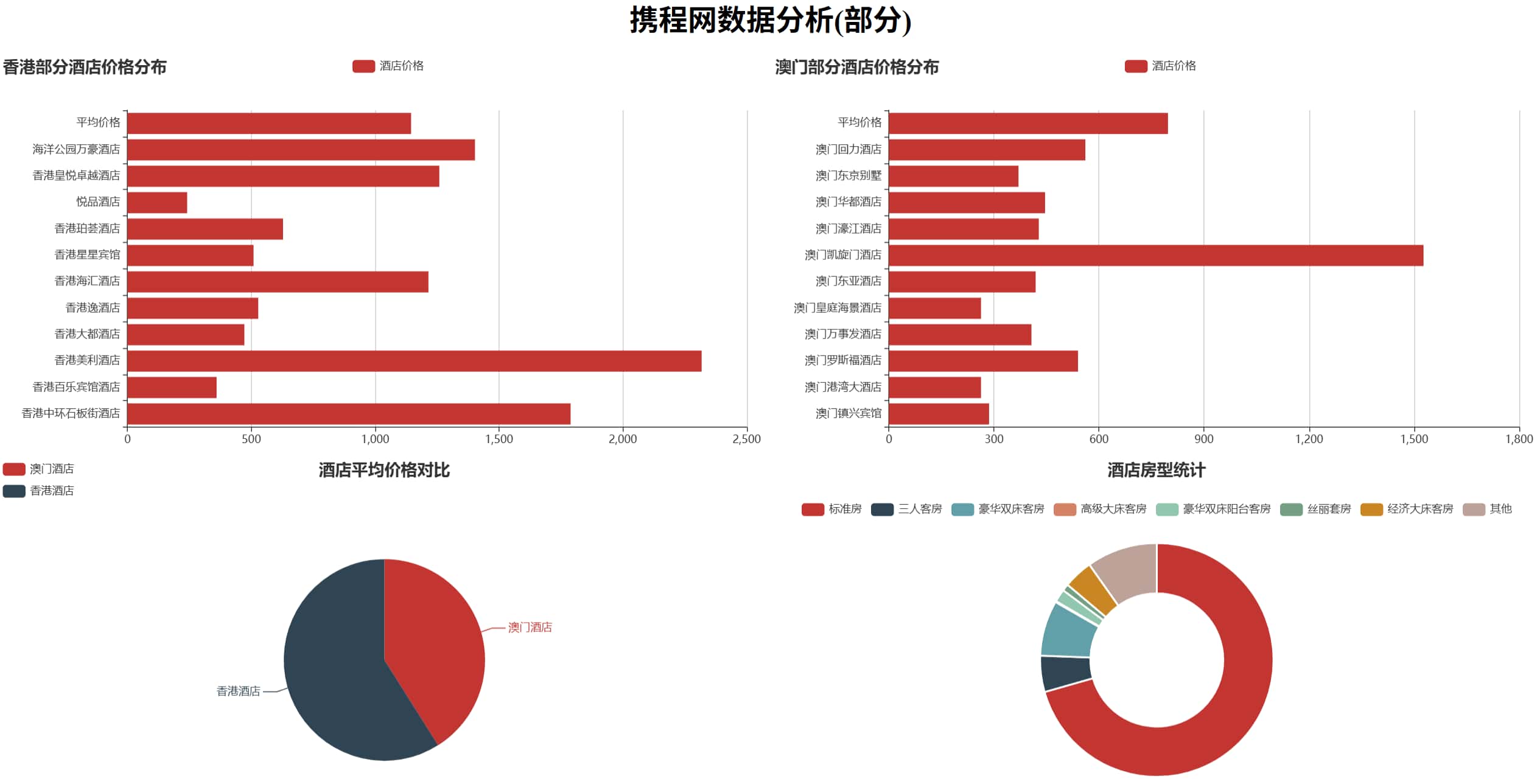 Web scraping with Jsoup, storage in HBase, visualization with ECharts for hotel pricing and reviews.
